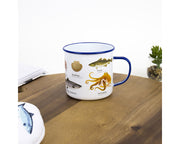 An enamel mug featuring a fine selection of our most recognisable sea life creatures.