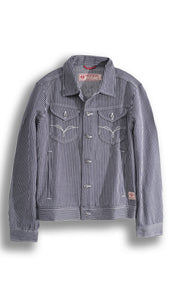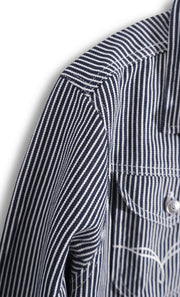 There’s something honest about a straight-up cotton denim jacket. No shortcuts. No frills. Just dependable fabric built to move with you from cool mornings to late-night rides. The Haymaker Hickory Jacket in our hickory striped denim leans into that legacy. It’s the kind of jacket that feels familiar from the first button. Durable without being stiff, structured without feeling heavy, it wears in naturally and fades the way only true cotton can. This is a jacket made for long roads, open skies, and years of good use.