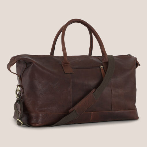 Attractive and spacy weekend bag in elegant soft buffalo brandy leather with double leather handle. This beautiful Weekend bag in buffalo leather with shoulder strap and two handles from Velorbis is perfect for a shorter trip or for a cozy weekend trip with friends. The weekend bag has a small side pocket on the outside where you can store what you need at hand. In addition, it is designed so that it can be packed completely together so that you can store it under your bed or in your closet. Inside, the leather travel bag has a large main compartment as well as a large pocket where you can store your smaller items. The weekend bag is spacious enough for an extra pair of shoes, a toiletry bag, and your clothes. Enjoy an unforgettable journey with this beautiful and exclusive leather bag by your side.