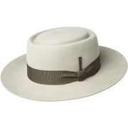 The Walsh is a new rounded pork pie shape in Baileys 'fur like' polished Elite Stiffened finish. This luxurious hat features a 3" 'tabletop' brim and completed with Japanese grosgrain trim and vintage flooring nail. It is finished with a goatskin leather sweatband and is fully lined.