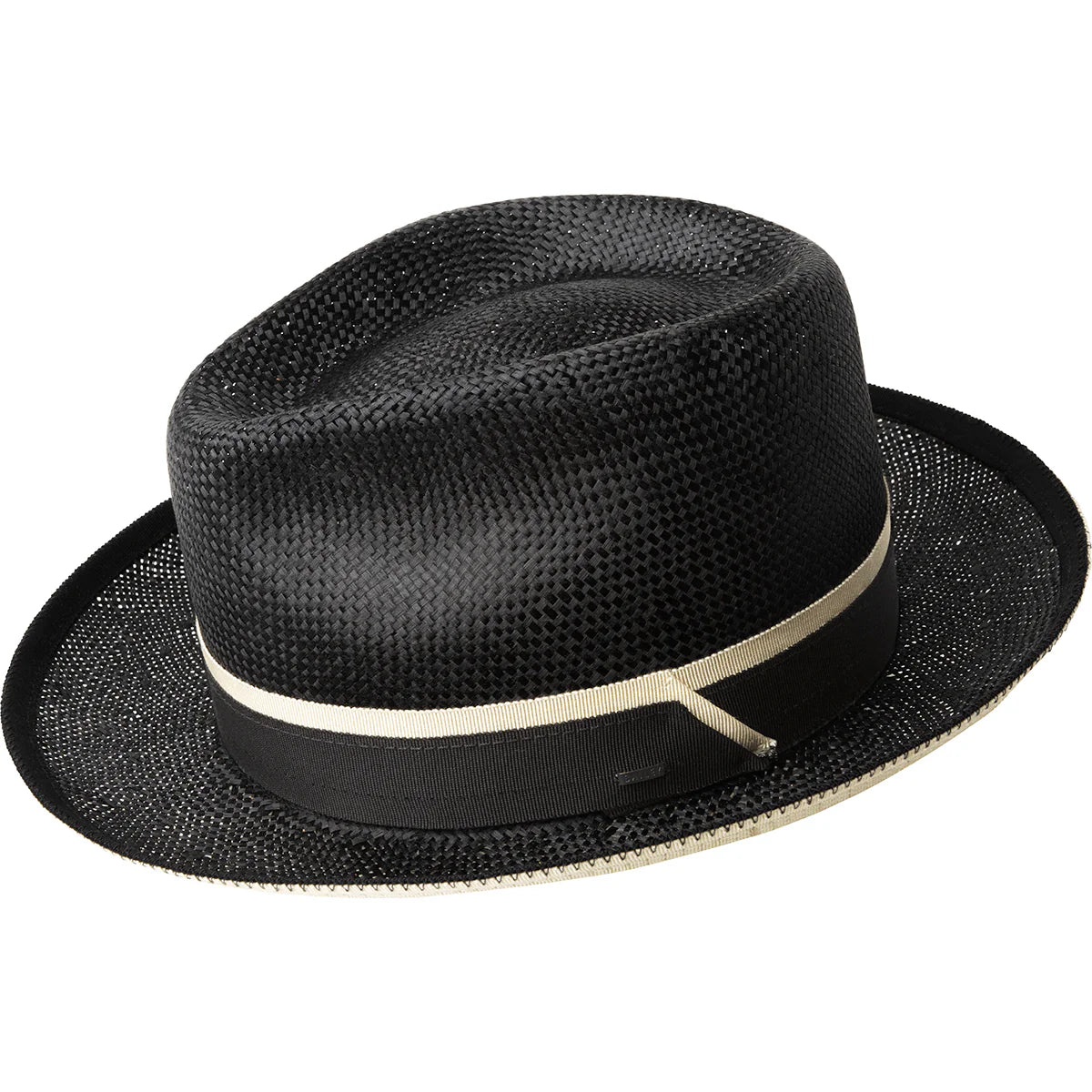 The Cresskill has a 3 3/4" Rounded Teardrop crown and a 2 1/2" brim. Made from Sisal straw, it is tastefully finished with a 2-tone fine Japanese grosgrain band and a contrasting 2-color Japanese grosgrain brim edge binding.