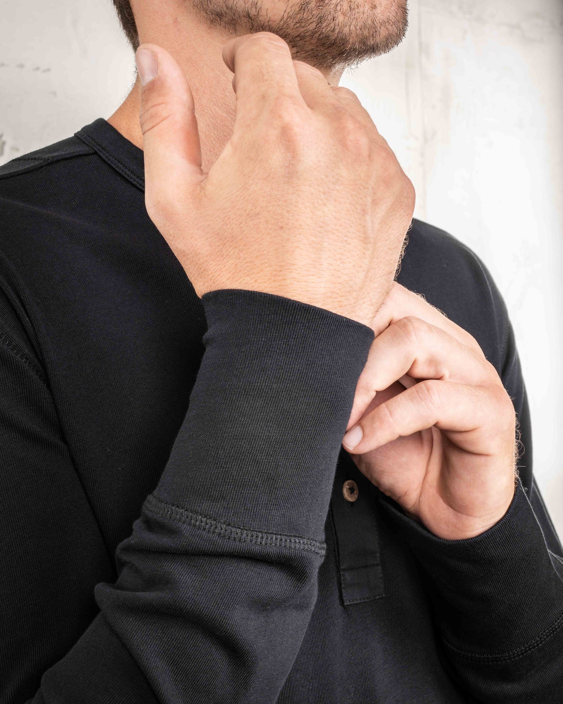 1927 Henley Shirt Long Sleeve Deep Black - Pike Brothers