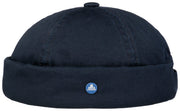 This modern “docker” (dockworker’s) cap features a close fit, leaving the ears exposed or covering them only by a few millimeters. The back of the head is also mostly exposed. Due to its round, minimalistic look, the traditional worker’s cap is gaining in popularity.