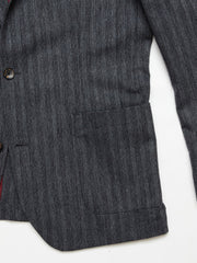 The Leopardi Blazer is a perfectly fitted blazer with patch pockets and center back split. Crafted from a luxurious Italian cotton-wool blend quality with irregular pinstripe. Slightly brushed surface for a soft winter touch.
